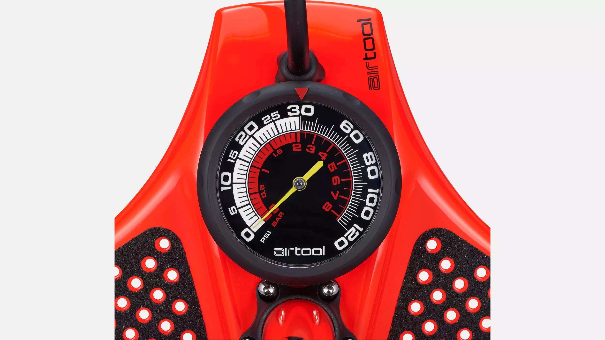 - Dual-scale 3" (76mm) oversized gauge has 0-30 PSI (2.2bar) zone for mountain tires, and 30-120 PSI (8.2bar) zone for road tires.