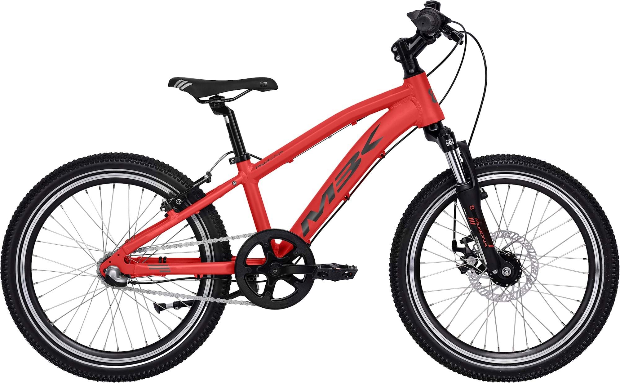 MBK Mud DNA er en mountainbike til børn, der elsker at cykle, om det er til skole eller i fritiden ude i skoven. Cyklen har et veludført aluminiumsstel, der kombineret med en affjedrende forgaffel, mekanisk skivebremse og fodbremse, både er sjov og sikker.